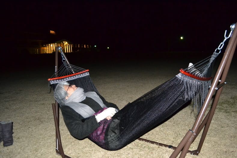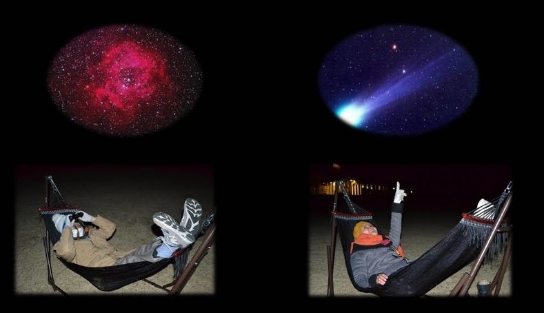 【自立式のハンモックに寝そべって星を楽しみます】