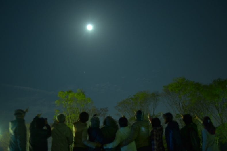 第2弾「月明りのストレッチ」開催(4/20)・・・満月が近かったため月明りの下、皆でのびのびとストレッチを楽しみました。見上げる先が夜空の体験はとても気持ちよかったです。その後の交流の場でも、宇宙のお話を皆で語り楽しいひと時でした♪