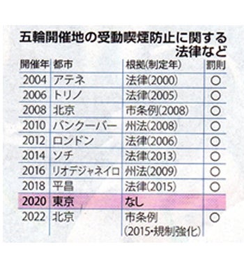 ②   2020年東京オリンピックに向けて「罰則付き受動喫煙防止法案」の早期実現へ
