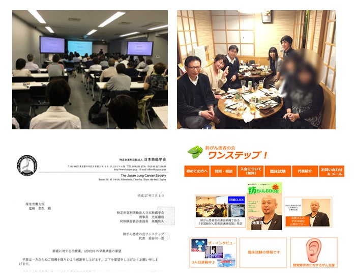 現在、日本各地にある肺がん患者団体や、学会、製薬会社、行政、マスコミ支援団体と力を合わせ、進行中です。