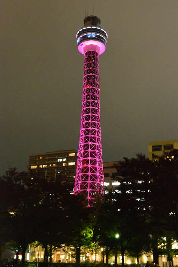 ※こちらはピンクにライトアップされた横浜マリンタワー