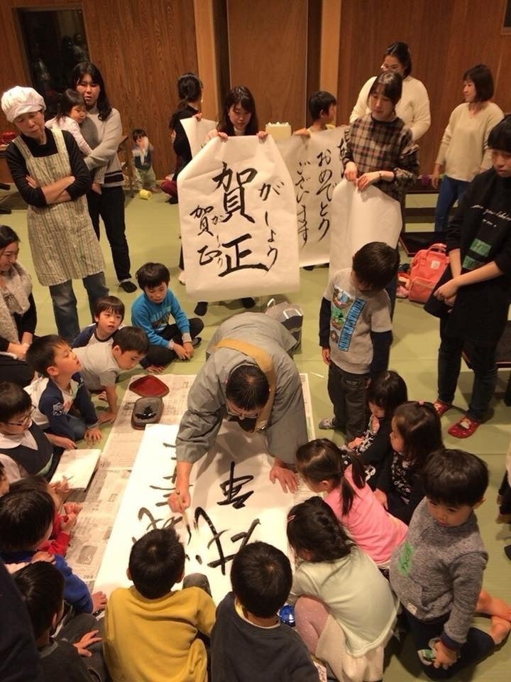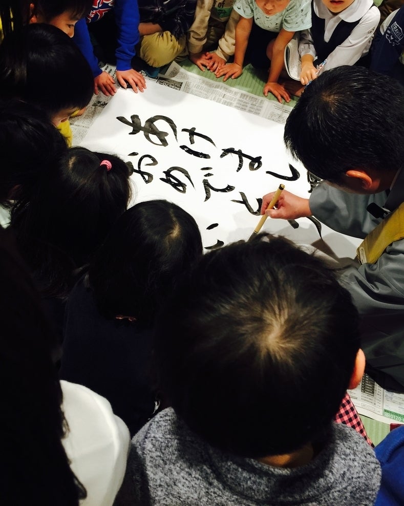 今日は和尚さま自ら、みんなの前で筆を持ち、書をお披露目しました。