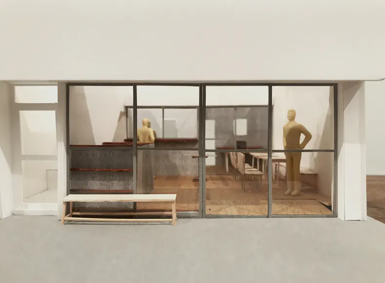 シェアスペースの場所は商店街の真ん中にあった空き物件です。人通りの多い通りに面したビルの1階です。今回のプロジェクトに賛同して頂き借りる事ができました。