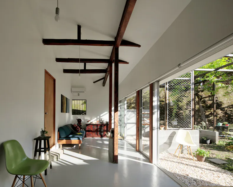 (商店街のすぐ裏にある木造のアパートを改修して地域のコミュニティスペースとしても活用出来る「藤棚のアパートメント」。2016年に完成し設計、運営を自分で行っています。)