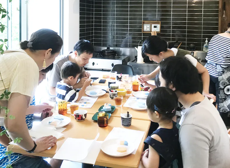 (商店街のアニメフェスタとコラボしたお菓子作りワークショップを藤棚のアパートメントで開催した時の様子。)