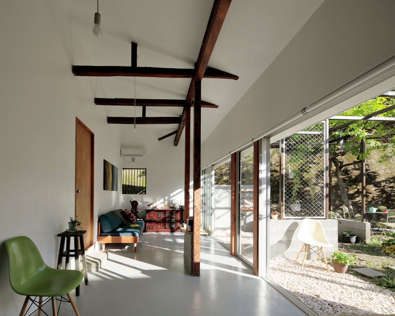 (商店街のすぐ裏にある木造のアパートを改修して地域のコミュニティスペースとしても活用出来る「藤棚のアパートメント」。2016年に完成し設計、運営を自分で行っています。)