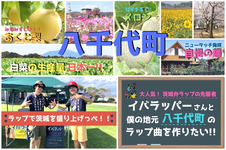 茨城で大人気!イバラッパーさんと僕が生まれ育った茨城県八千代町をテーマにしたラップ曲を制作して、多くの人々に八千代町のことを知ってもらいたい!!
