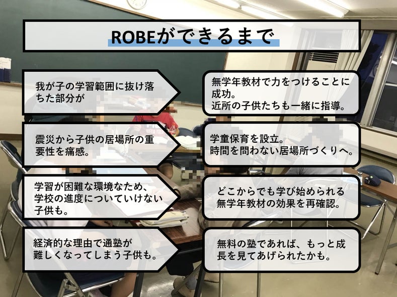 通常の塾に行きたくてもいけない子の無料塾「Robeつくば学習会(以下つく学)」を2016年7月に設立しました。