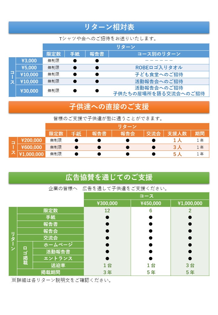 加えて、「手紙」「活動報告書」「活動報告会」「交流会」も付随します。