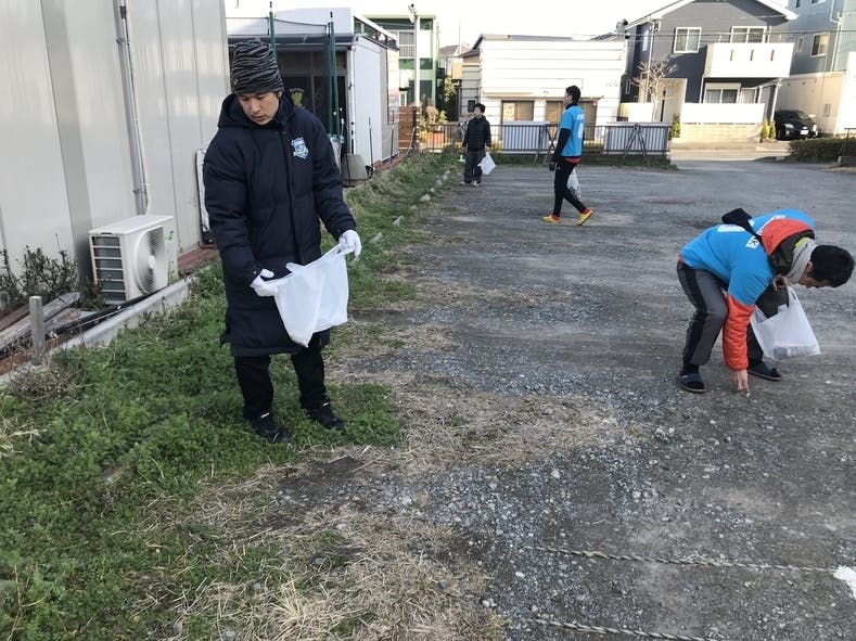 大地監督と選手で一緒にミズノフットサルプラザ藤沢周辺や、里のうどん村岡本店の駐車場のゴミ拾い!