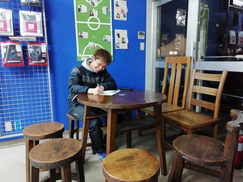 いつもプロジェクトミーティングをミズノフットサルプラザ藤沢さんの「憩いの間」をお借りしてやらせていただいています。(憩いの間←写真の後藤スタッフ命名)