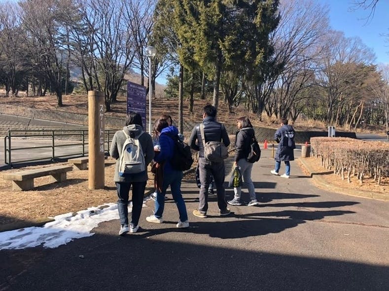 会場には雪がありました。レディース選手みんな今年初雪です(笑)
