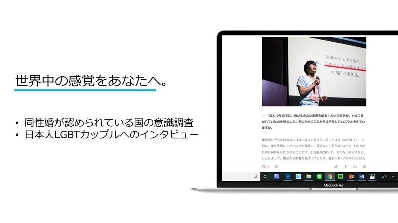過去には、家族として認められるように同性婚ができる国に移住した日本人の方、またセクシャリティのウェブ診断サービスを制作中の大学生などにインタビューを行いました。