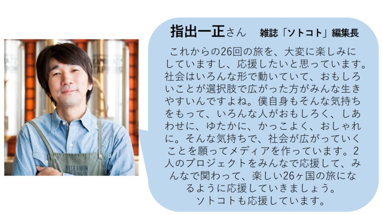 わたしたちが12月号で表紙を飾った雑誌「ソトコト」の指出一正編集長より、応援メッセージをいただきました。