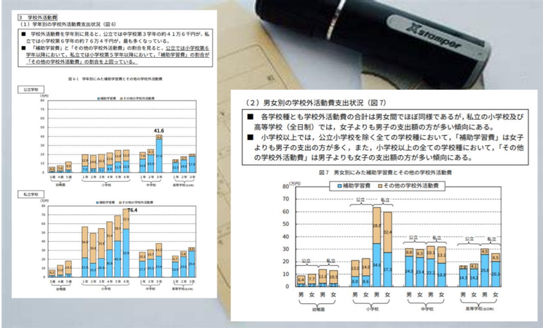 子育てにはお金がかかると言いますが、特に学校外費用(習い事・塾)の比率が高くなっております。