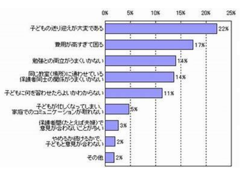 下記のアンケートを見ますと、『送迎が大変』『費用が高い』が上位となっています。