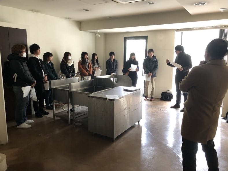 まずは学生達に空き店舗を見てもらい、新しい拠点のイメージを意見してもらいました。