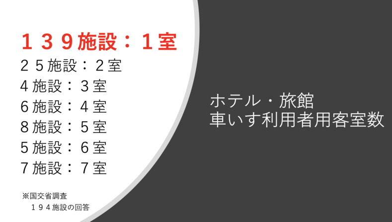 国交省調査による194施設のホテル・旅館のうち車いす利用者用客室数のデータ