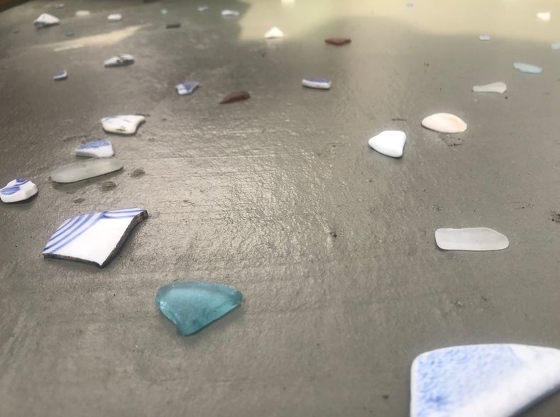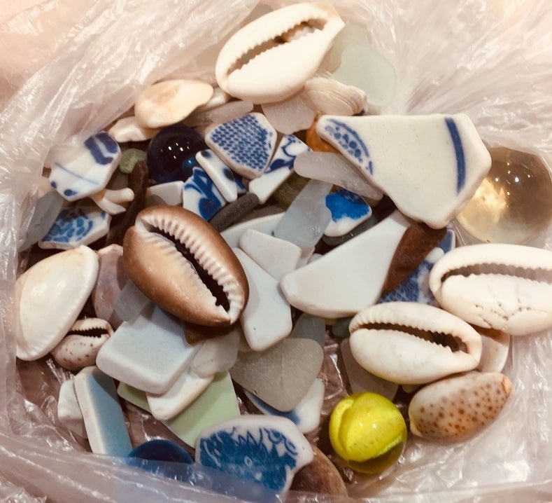 海岸などで見かけるガラス片や貝。波に揉まれて角の取れた小片となり、柔らかな風合いを出してくれます。