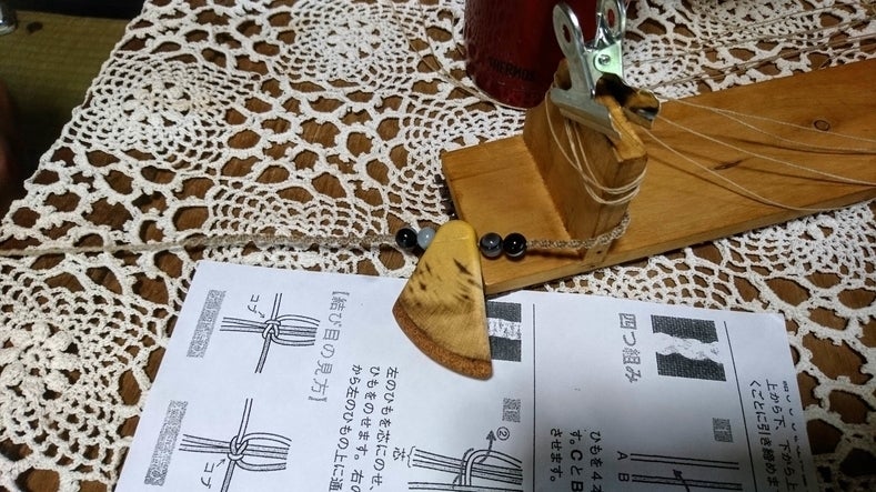榎の木片をペンダントヘッドにして、マクラメ編みでペンダントに仕上げます。