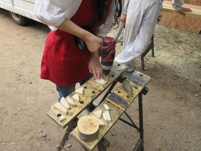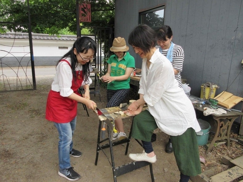 木工をなさる「にれ工房」の山崎誠治さんに教えてもらいながらの作業です。