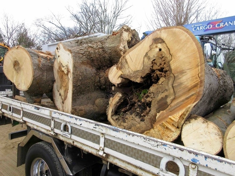 切った枝や幹を見るとやはり痛みが多く、伐採作業中、チェーンソーを入れると真ん中が柔かいのがよくわかったのだそう。榎、ここまでよく頑張ってくれました。