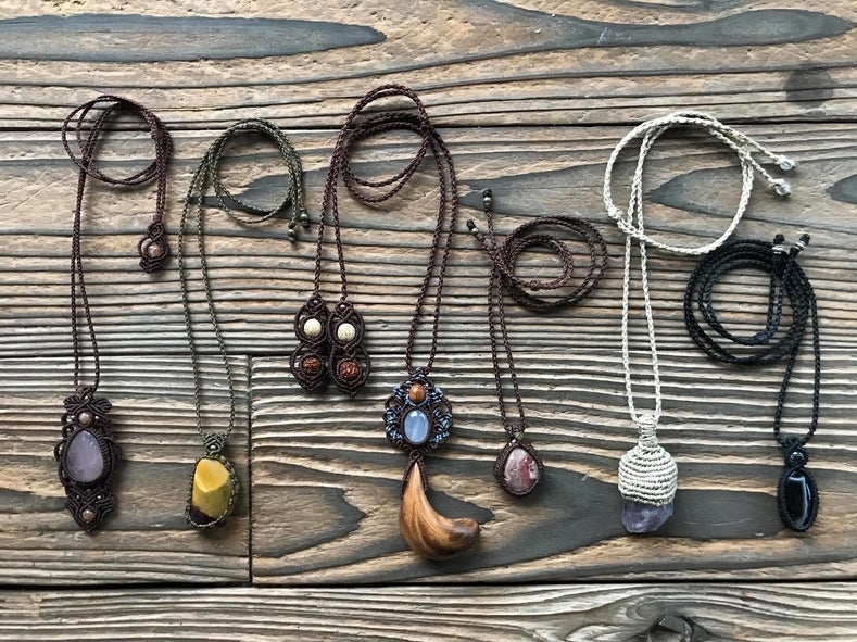繊細なマクラメ編みと榎の木片の組み合わせを楽しむアクセサリーを作ります。糸と手が作り出す繊細で複雑な模様は難しそうにも思えます。でも今回は初心者の方でも楽しく作れるデザインを考えていただきました。