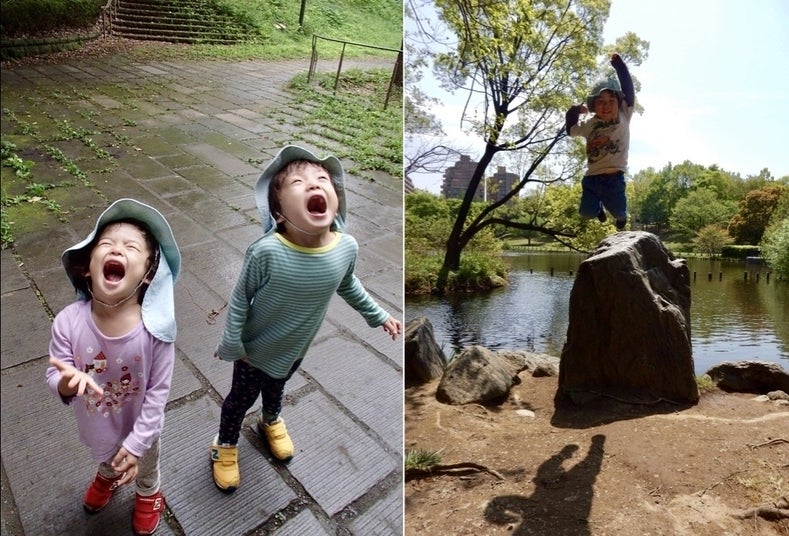 公園では、手足やお尻をドロドロにして遊んだり、生き物を触ってみたり、風を感じてゆっくりした気分になったり、昨日登れなかった木に挑戦したりして、自然の中での時間を過ごしています。