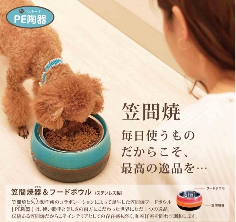 PE陶器とは、久力製作所と笠間焼窯元のいそべ陶苑の協力により誕生したペット用の高級食器です。