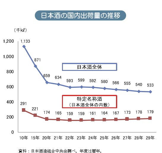 しかし、現在日本酒の消費量は減少傾向にあります。