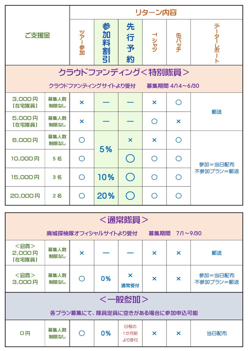 ・[クラウドファンディング特別隊員]には、各プラン<申込受付を担当する旅行業代理店>や<新着情報/受付(発売)開始情報/キャンセルによる再販情報>など、常時お知らせをメール発信致します。