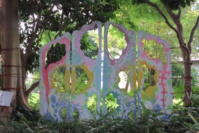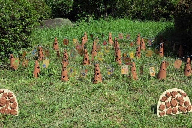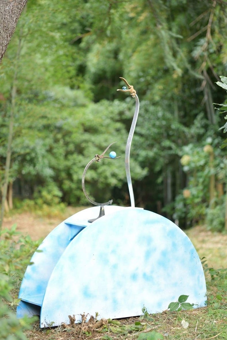 会場の木々や遺構を生かした展示は、室内展示では得られない、自由や遊びに満ちています。アートを大上段に掲げるのではなく、誰でもが楽しめる展覧会を目指しています。