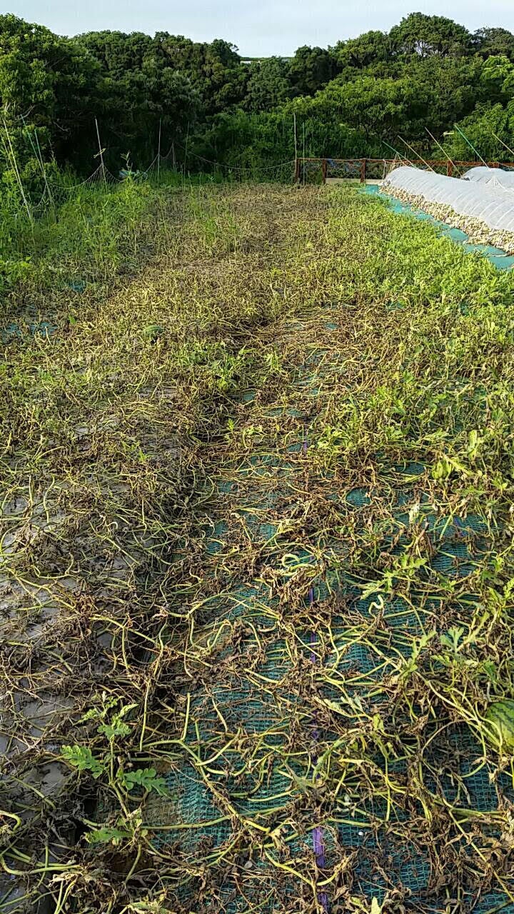 こんなこともあり夏作におおいに期待をかけておりましたが、梅雨寒、長雨での日照不足でスイカが伝染病にかかってしまいました。こんな状況が市場にながれるともう売れません。例年は3000個くらい収穫するのですが今年はほぼゼロ。収入源が無くなってしまいました。