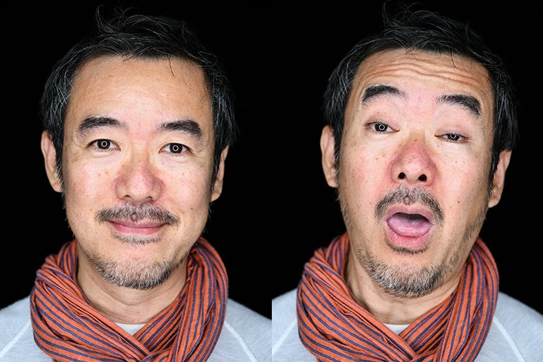 まず自由にトライしてもらうのですが、ほとんどの方が「ちょっと可愛らしい変顔」になってしまいます。狙っている「いちばん見られたくない顔」とはほど遠い(笑)。次にこちらからリクエストをして「目を半分開けて!」「鼻の穴をふくらます!」「あごが外れたように!」「魂を抜いて!」など、ライブで表情を作っていったのです。