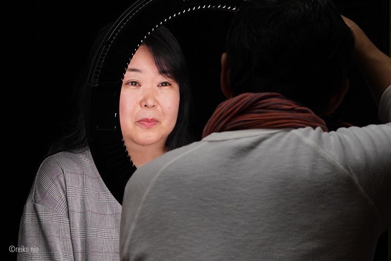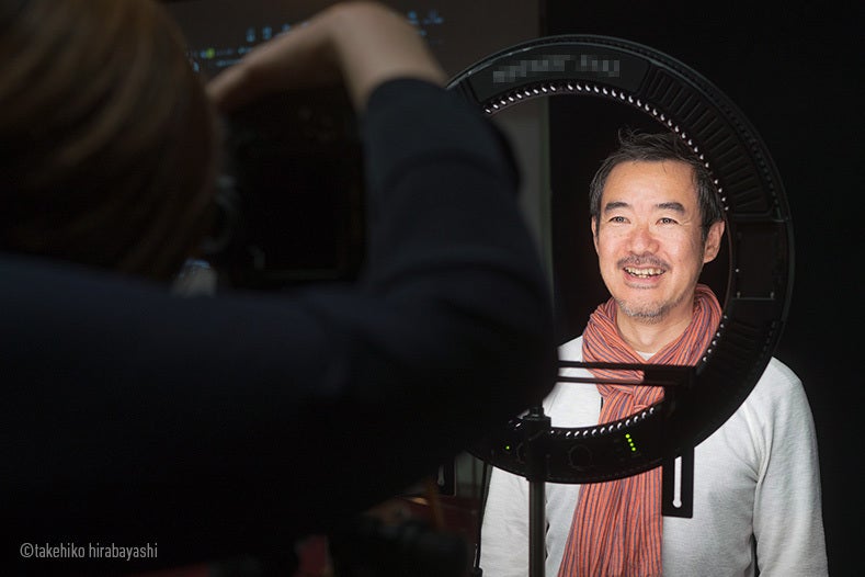 写真:撮影はリングライト一灯でシンプルに。どんな場所でも素早くセッティングできるように工夫しています。