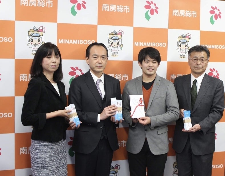 小塚崇彦さんが南房総市を訪れ、皆様からのご支援の気持ちと共に、たくさんのスケートリンク招待券を手に、石井市長を訪問しました。
