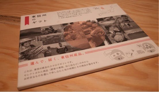▲12 枚の農家のカードが入った農産物のカタログギフト「東信州ギフト」