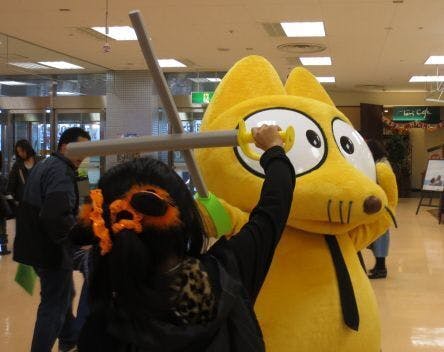 長野県塩尻市のハロウィンは子どもたちが本当にたくさん集まります。 今日も大賑わいでした。 そんな中、げんすけもハロウィンに参加。 ※ハロウィンでの様子がご覧いただけます 今回は、皿回しではなく、チャンバラで子どもたちと遊びました!