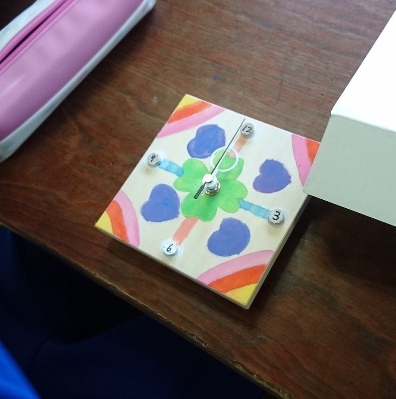 電池を入れると動き出す時計を、みんないい笑顔で見ていました!