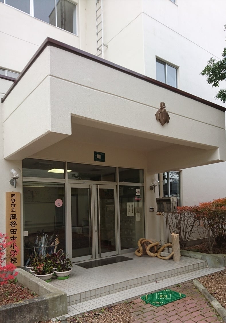 写真は、両小学校の現在の様子です。岡谷田中小学校は職員玄関に新しい校名が入った看板がありましたので、そちらを撮影してきました。