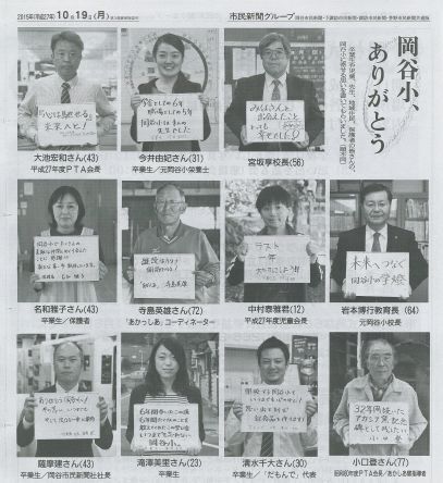 先日、地元紙の岡谷市民新聞の紙面にて、岡谷小学校閉校に関する特集が掲載されました。