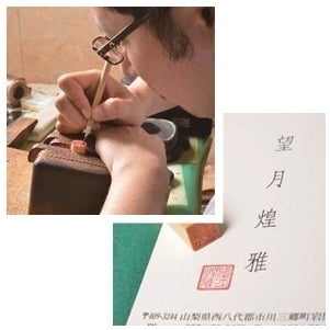 六郷出身の望月煌雅(望月一宏)さんは3代目として印章製造販売業を営んでいます。甲州手彫印章伝統工芸士として一本一本丁寧に字入れを行い、彫刻しているため、お客様一人ひとりに唯一無二のハンコを提供しています。第26回技能グランプリで優勝を果たし、その技術は全国的にも有名でもあります。後継者不足が叫ばれている印章業ですが、六郷のハンコ技術を受け継ぎ、活躍している六郷を代表する職人さんの一人です。