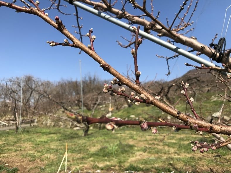 3/31のレポートでもお知らせしているように例年にない冷え込みにより、桃の開花状況が4~5日遅れている状況です。例年ですと既に開花が始まり「受粉用の花取り」という作業を各農家さんがおこなっているのですが、まだ大半の桃の木がつぼみの状況が続いております。昨日の暖かい気候でかなり状況はすすんだのですが、、、