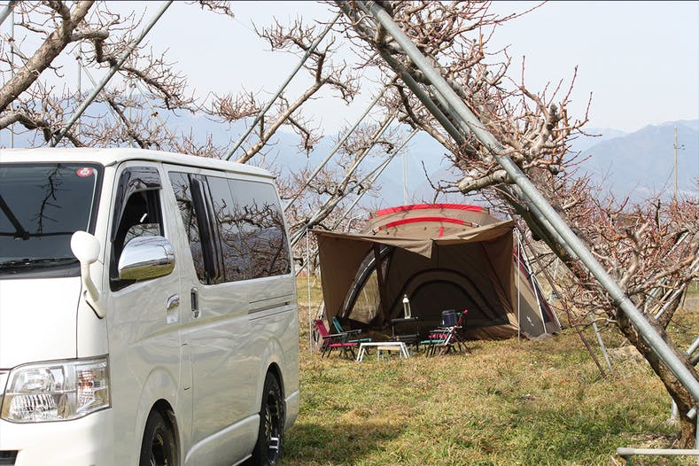 昨日はツールームテント(snowpeak リビングシェルロング)をお借りして桃のトンネル会場に設営してみました。