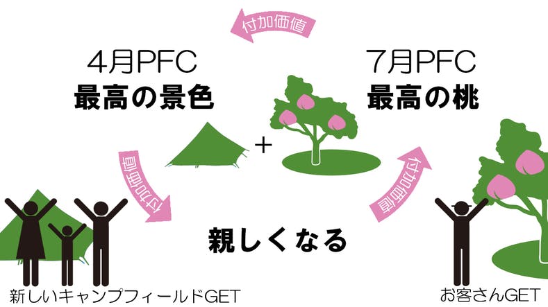 起案者の想いに大きく賛同、共鳴してくれた 農カフェ【hakari】を営む大北農園風間さん、そして起案者の両親が営むオーナー制桃農園【バイパス清果園】 PEACH FARM CAMPのスタートアップにチャレンジしようと思います。