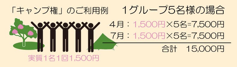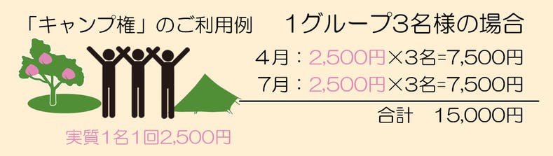 キャンプ権をお持ちの方には桃の里温泉「市民価格優待券」を特別にご提供させていただきます。