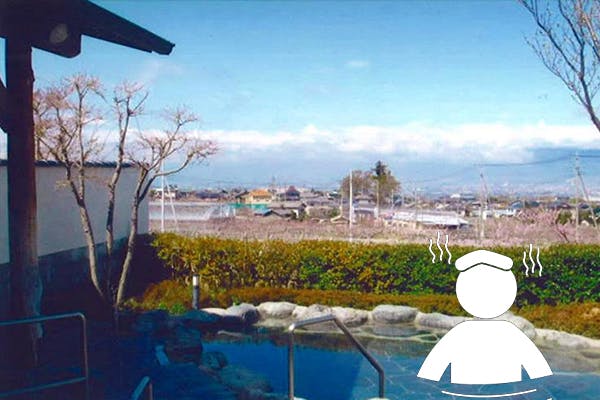 キャンプで汗をかいたら近くにあると嬉しいのが温泉、笛吹市には石和温泉郷をはじめ温泉施設が数多くあります。今回のキャンプ会場近くには桃の花を見ながら温泉に入ることができる【桃の里温泉もあります。