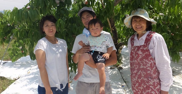 私たちの地域は南に富士山を望む盆地にあり、日本有数の日照時間と激しい寒暖差は果物の育成に最適と言われています。そんな地域で「1歳になった自分の子どもに、安心して美味しく食べてもらおう」という思いで果物を育てています。