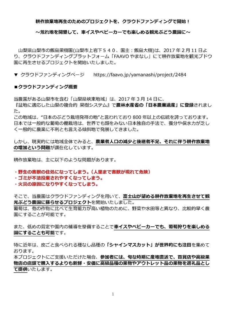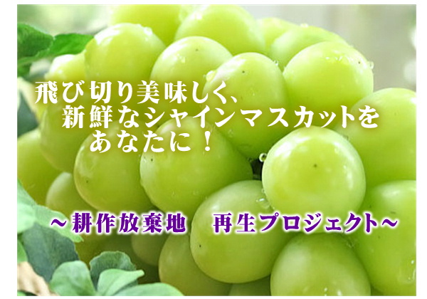 ぶどう栽培では日本最古の歴史を誇る「山梨県峡東地域」。シャインマスカットの一大産地でもある当地域ですが、農業後継者不足と耕作放棄地(荒地)の増加に悩まされています。そんな荒地を皆が楽しめる観光ぶどう園として蘇らせてみませんか?