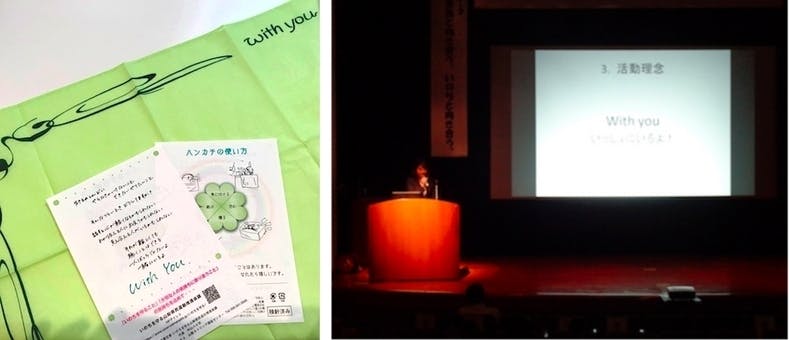 そのために啓発用『with youハンカチ』の制作、自殺予防推進大会でのプレゼンなど、皆さんに自殺予防について、少しでも考えてもらえるように活動を進めてきました。